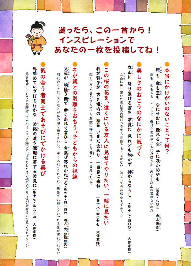 万葉集に残されたさまざまな情景を、あなたの感性で切り取って見せてください。メールでも応募できます。
